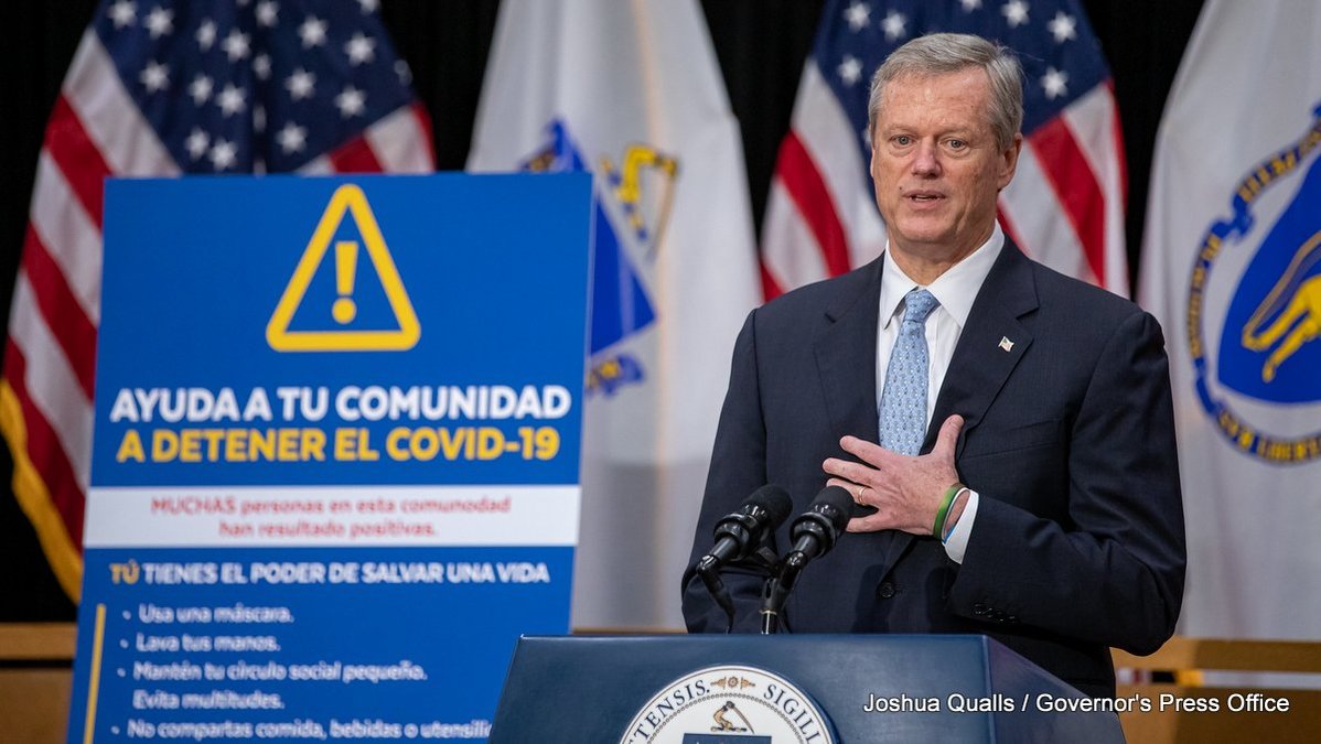 And it has been economically devastating for many in the commonwealth. On Thursday, Baker cited just one statistic that shows the impact of the global pandemic: Logan Airport in Boston, which was handling 450,000 passengers per day before the pandemic, is handling about 50,000 per day right now.