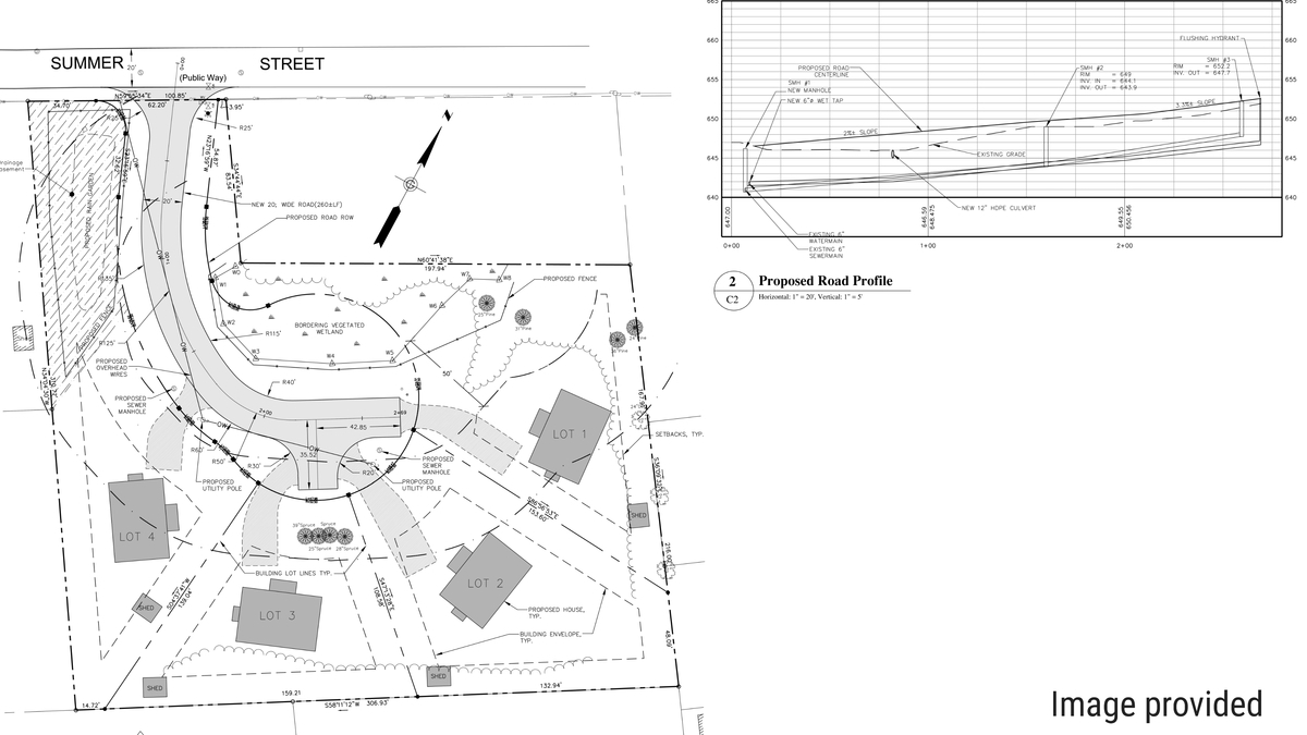 Essentially, the most recent set of plans specify exactly where on each home will be placed in the four building lots to be carved out of the 1.75-acre parcel. Prior iterations had more non-specific building envelopes marking where homes could be placed.