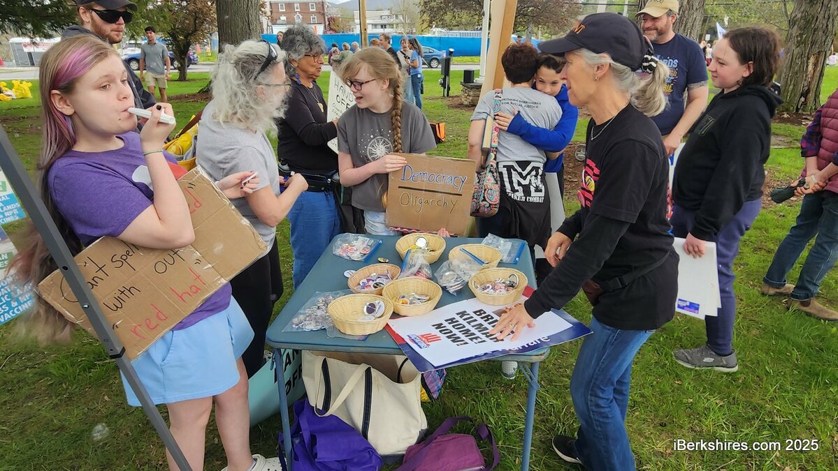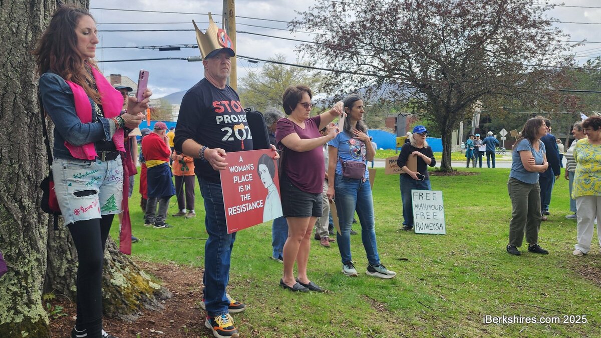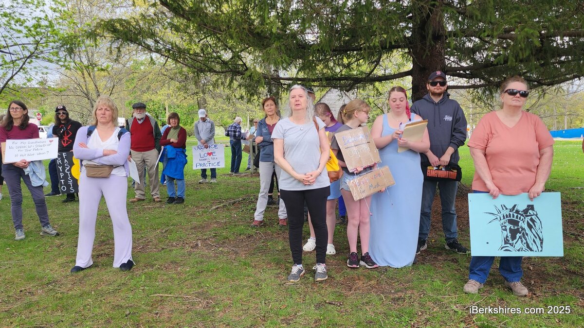 A rally at Field Park on Saturday drew more than 200 people, part of May Day protests nationwide since Thursday. Standouts were also planned in Pittsfield and West Stockbridge.