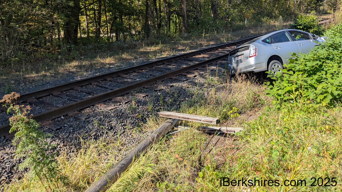 WILLIAMSTOWN, Mass. — A driver escaped injury Friday afternoon after their westbound Toyota Prius veered off North Hoosac Road, over an embankment, coming to rest near the railroad tracks.